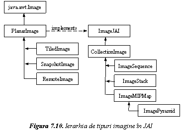 Clasa PlanarImage. Clasa PlanarImage este clasa principala pentru descrierea imaginilor bidimensionale în JAI. Aceasta clasa implementeaza interfata RenderedImage din Java 2D API, TiledImage si OpImage.