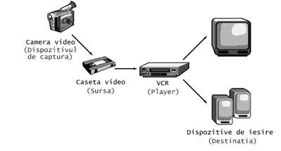 Dispozitivele cum este VCR-ul (Video Cassete Recorder) sunt des întâlnite pentru realizarea operatiilor de înregistrare, procesare si prezentare a datelor media dependente de timp. Când se ruleaza un film folosind un VCR, stream-ul media provine de la caseta video. VCR-ul citeste si interpreteaza datele de pe caseta si trimite semnalul adecvat spre televizor si boxe.