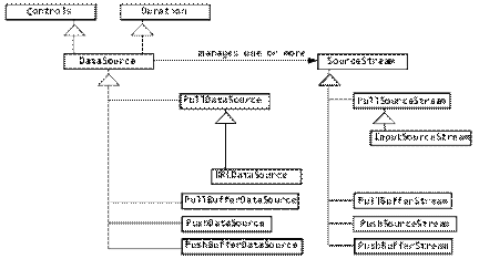 În Java Media Framework exista mai multe tipuri de obiecte DataSource, cum ar fi: PushDataSource, PushBufferDataSource, PullDataSource si PullBufferDataSource.