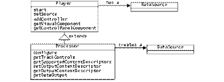prin implementarea directa a interfetelor Controller, Player, Processor, DataSource si DataSink.