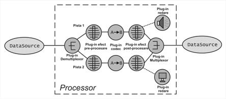 Procesarea fiecarei etape este realizata de o componenta de procesare separata. Aceste componente de procesare sunt plug-in-urile JMF. Daca Processor-ul suporta TrackControl, este posibila selectarea unui plug-in pentru procesarea unei piste anume. Exista cinci tipuri de plug-in-uri JMF: