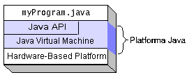 Figura urmatoare (Figura 1.3.) descrie un program care ruleaza pe platforma Java. Dupa cum se vede Java API si Java VM izoleaza programul de partea hardware a sistemului.