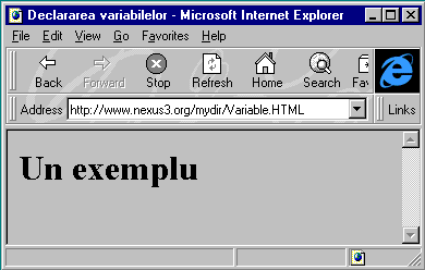 Exemplul din listingul 31.1 ne arata cum se declara, se initializeaza si se foloseste o variabila pentru a obtine rezultatul din figura 31.1.