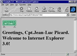 '. Welcome to Internet Explorer 3.0!</H1>");