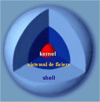Majoritatea sistemelor de operare, inclusiv Linux, au trei mari componente: Kernel-u 23523l1111x l, Shell-ul si Sistemul de Fisiere (FIG. 3.2). Kernel-ul administreaza operatiile computerului. Shell-ul asigura o interfata pentru interactiunea dintre utilizator si calculator iar sistemul de Fisiere asigura un mijloc de organizare si gestionare a informatiilor pe discurile hard ale calculatorului.