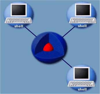 Comenzile utilizatorului sunt receptionate de catre shell. Aceste le traduce si comunica comenzile kernelului care, la randul sau proceseaza cererea si indeplineste sarcinile.