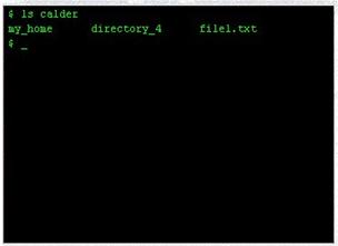 Shell-ul se comporta ca un interpretor de comenzi, interpretand comenzi simple pentru a executa procese complexe. De exemplu, pentru a vizualiza continutul disponibil al directorului proiectului Calder se tasteaza comanda ls calder (FIG. 3.5).