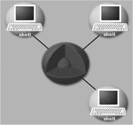 Orice utilizator primeste un shell dupa executarea cu succes a procesului de login. Fiecare shell comunica cu kernelul si se comporta ca un interpret intre utilizator si kernel. Comenzile utilizatorului sunt receptionate de catre shell. Aceste le traduce si comunica comenzile kernelului care, la randul sau proceseaza cererea si indeplineste sarcinile.