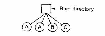 Problema care apare cand avem un singur director apare intr-un system cu mai multi utilizatori cand mai multi utilizatori pot denumi la fel fisiere diferite.De exemplu daca utilizatorul A creeaza un fisier “mailbox” si apoi alt utilizator B creeaza un fisier cu acelasi nume,se va rescrie fisierul utilizatorului A.In consecinta aceasta schema nu mai este folosita pentru un sistem cu mai multi utilizatori ,dar poate fi folosit pentru un sisteme mici incorporate,de exemplu,un sistem intr-o masina care este realizat pentru a inregistra profilul mai multor utilizatori pentru un numar mic de soferi.