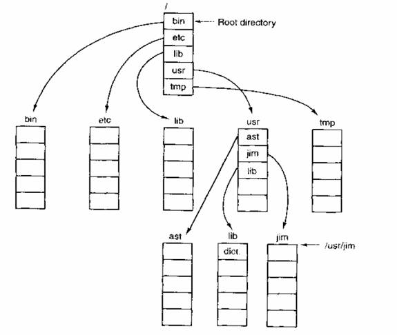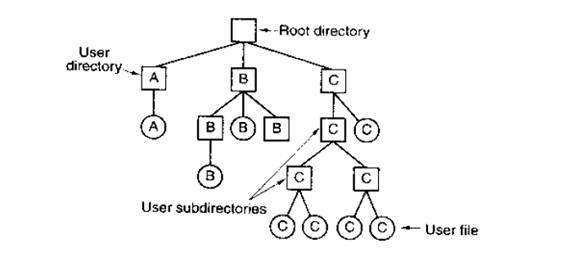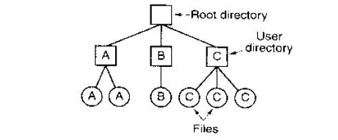 Astfel,fiecare utilizator poate avea atatea directoare cate are nevoie si fisierele pot fi grupate impreuna in moduri logice.Aceasta gandire este aratata in figura 6-9.Aici,directoarele A,B si C continute in directorul radacina apartin fiecare unui utilizator diferit,doua dintre ele creandu-si subdirectoare pentru functionare proprie.