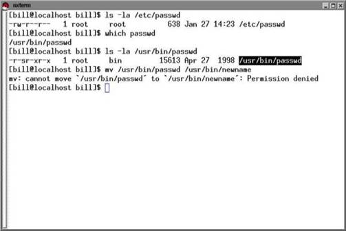 Mai usorExista o serie de comenzi care pot sa scrie/citeasca fisiere dar numai utilizatorul root are drepturile respective; insa sunt utilizate si de alti utilizatori.