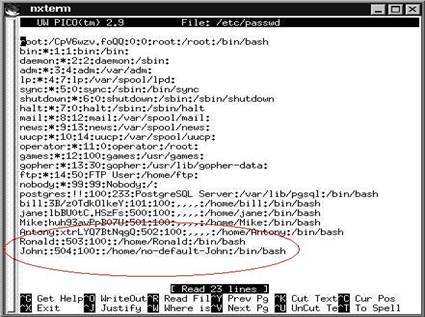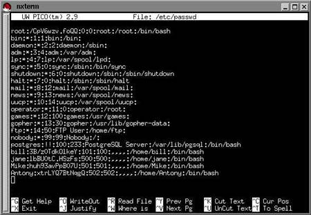 Mai intai sa ne uitam la continutul fisierului "/etc/passwd" (FIG 5.3):