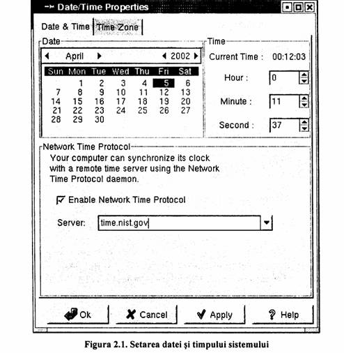 Mentionam ca pentru a utiliza NTP, pachetul ntpd trebuie sa fie instalat 5. daemonul sa fie configurat pentru a porni automat la bootare. Pentru mai multe informatii despre NTP, îndrumam cititorul interesat sa consulte documentatia