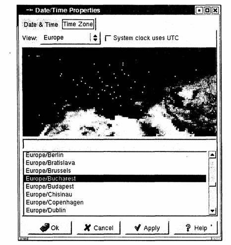 Fisierul de configurare a zonei de timp este /etc/sysconfig/ciock. Prezentam mai jos un fisier exemplu:
