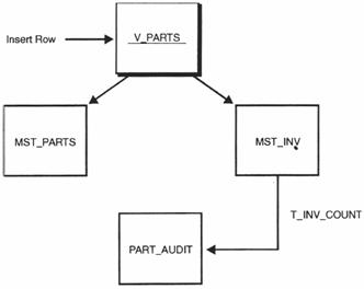 Figura 25.1 ilustreaza o utilizare tipica a unui declansator. Aceasta figura ilustreaza vederea v_articole cu tabelele de baza LST_ARTICOLE si LSTJNVENTAR. Tabelul LSTJNVENTAR are un declansator numit t_efect_inventar.