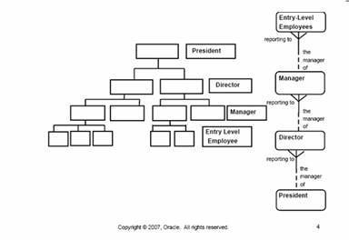De multe ori rolurile sunt organizate de ierarhii – la serviciu (manager, sef de echipa,vanzator, preparator de mancare), sau la scoala (director, asistent de director, profesor, staff). Data ierarhica este foarte des intalnita. Intelegerea ei te va ajuta sa modelezi: