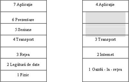 Fig. nr. 4.14. Comparatie intre modelul ISO/OSI si modelul TCP/IP