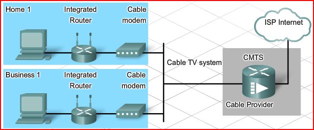 CMTS (cable modem termination system) - pentru a pune datele de download si de upload pe un cablu de televiziune este nevoie de doua tipuri de echipamente: un modem de cablu la client si un system terminator pentru modemul de cablu (CMTS) la provider (Fig. 7.2.6.5).