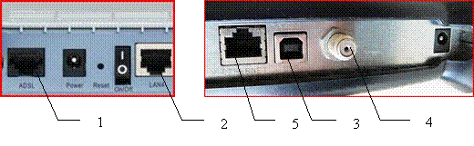 Sarcina de lucru: Analizati imaginile de mai jos si potriviti numerelor din tabel urmatoarele cuvinte: port RJ-45, port ADSL (RJ11 pentru linia telefonica), port cablu TV, port USB, port RJ