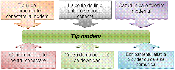 Sarcina de lucru: Folosind surse diferite (fisa de documentare 7.2.6, internet, manual, reviste de specialitate, caietul de notite etc.) obtineti informatii despre modemul DSL/ADSL si modemul de cablu. Informatiile obtinute organizati-le dupa modelul urmator: