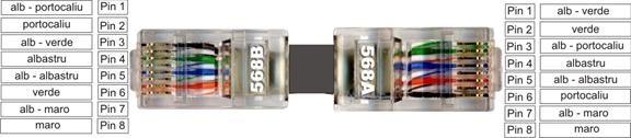 Montarea conectorului RJ-45 se face conform standardelor TIA/EIA-568A si TIA/EIA-568B (Fig. 7.1.2.7).