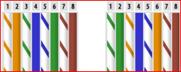 b) Cross-over cable (cablul inversor)- daca inversam la cele doua capete ale unui patch-cord firele corespunzatoare pinilor folositi pentru transmisie, respectiv receptie, obtinem un cablu cross-over. Acest cablu inverseaza pinii 1 si 2 cu pinii 3 si 6. Pinul 1 ajunge în cealalta parte la pinul 3 si pinul 2 la pinul 6. Acest cablu se realizeaza facând un conector pe standardul A si una pe standardul B, practic se inverseaza perechile portocaliu cu verde (7.3.2).
