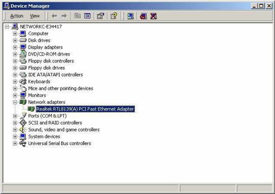 Dupa cum observati din imagine, in sectiunea “Network adapters” se afla instalata o placa de retea “Realtek RTL8139”.