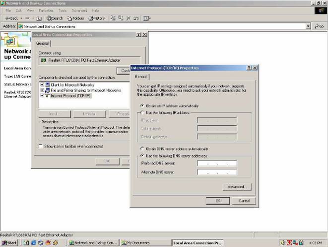 Configurarea unei placi de retea (in Windows 2000/XP)