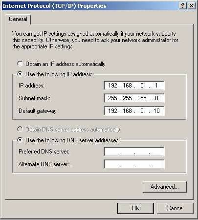 Setarile facute mai sus sunt valide pentru un calculator ce are acces la Internet prin Gateway-ul “192.168.0.10”. Suplimentar se va specifica si server-ul de DNS ce va rezolva adresele de internet (de ex: cele introduse in browser). In mod normal, server-ul de DNS are aceeasi adresa IP ca a Gateway-ului intrucat acel calculator are si functie de server de DNS.