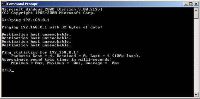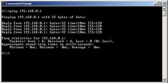 Pentru a va asigura ca ati configurat corect placa de retea si ati stabilit adresa IP, testati conexiunea apeland comanda “ping” sub “Command Prompt” astfel: “ping IP” unde IP este adresa IP stabilita pentru interfata de retea prezenta in calculator.