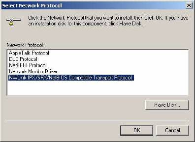 Acum apasati butonul “Add” si selectati protocolul “NWLink”: