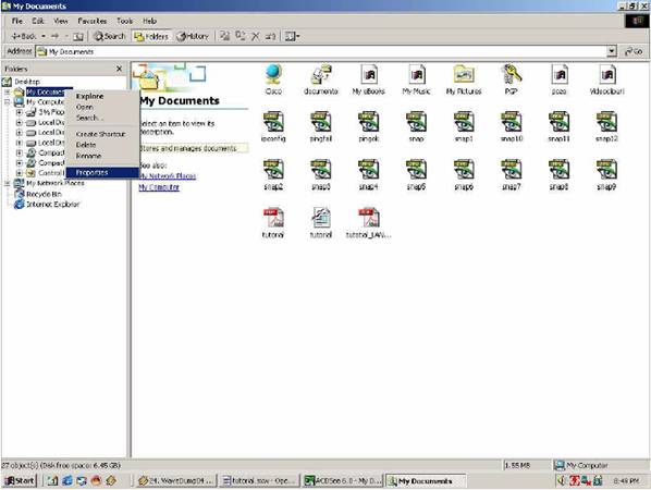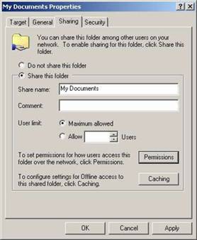 Deschideti mai intai fereastra Windows Explorer si dati click stanga pe resursa ce doriti s-o partajati. In imaginea de mai jos se prezinta modul de partajare al directorului “My Documents”: