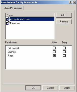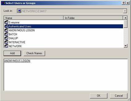 Selectati categoria/grupul sau numele persoanei careia ii dati drepturi dand dublu-click pe aceasta si apasati butonul “Ok”. In cazul de fata s-a ales “Authenticated Users” - utilizatori autentificati – acest grup il reprezinta utilizatorii ce acceseaza resursele dvs. printr-o parola.