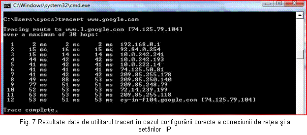 fluxuri (Fig. 6). Utilitarul tracert (in sistemele Unix si Linux se