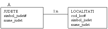 Observatie: Relatia A are cheia primara "simbol_judet", iar relatia B are atributul "simbol_judet" cheie externa.