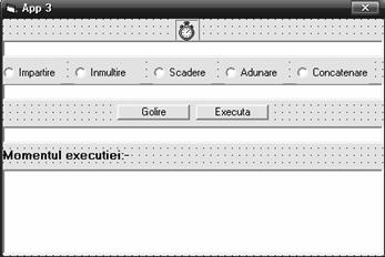 Controlul butoane de opțiune( Obtion Button) se folosește pentru a afișa o lista de obțiuni dintre care utilizatorul poate alege una singura la un moment dat. Butoanele de obțiune sau butoanele radio (cum se mai numesc) trebuie sa faca parte dintr-un grup de butoane, selectarea unuia dintre ele ducand la invalidarea imediata a celorlalte. Aspectul unui astfel de control se stabilește cu propietațile: Style, Picture, DownPicture și DisablePicture. Starea controlului este controlata de propietatea Value,care are valoarea True daca butonul este selectat și False in caz contrar.