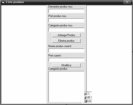 Controlul Caseta cu lista(List Box) afișeaza pe verticala o lista de obțiuni din care utilizatorul poate alege una sau mai multe elemente. Pentru a adauga un element la caseta cu lista se utilizeaza metoda AddItem cu sintaxa