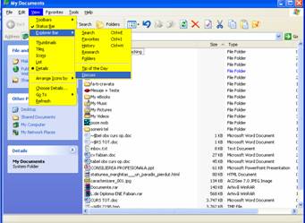 Observatii lector: pentru a efectua operatiile mentionate in continuare (redimensionare, mutare, derulare) fiecare cursant va trebui sa aiba pe ecran o fereastra (My Documents) care trebuie sa fie de dimensiuni reduse - nu maximizata (Restore).