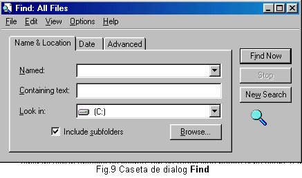 2) daca nu este deja selectat, selectati prin clic optiunea Name & Location din caseta de dialog Find:All Files (fig.9);