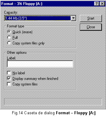 selectati optiunea Format si va aparea caseta de dialog Format - Floppy [A:] (vezi figura 14);
