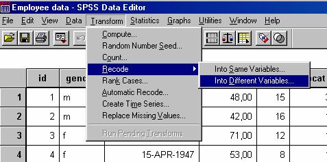 Se lanseaza procedura Recode - Into Defferent Variables din meniul Transform:
