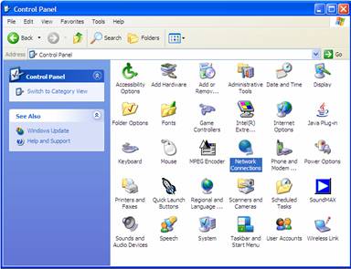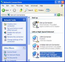Pentru lansarea in executie a ferestrei Network connections se executa dublu click cu mouse-ul pe pictograma cu acelasi nume.