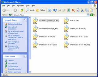 Instrumentul prin care se asigura identificarea elementelor (resurselor) unei retele si "navigarea" prin retea este aplicatia My Network Places. Prin lansarea in executie a aplicatiei My Network Places se deschide o fereastra standard in care sunt afisate pictogramele care reprezinta resursele retelei.