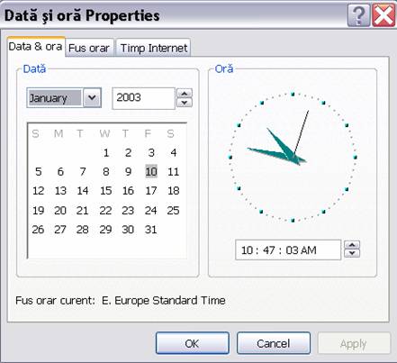 c. Timp Internet (Internet Time Sincronizarea automata cu un server de timp Internet dorit.