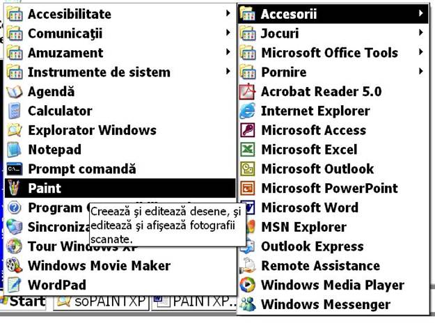 Pentru lansarea programului Paint selectati optiunea Start→Programe→Accesorii→Paint