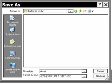 Desenul pe care l-ati realizat trebuie sa-l salvati, folosind comanda Salvare ca...(Save As.) din meniul Fisier (File), astfel: