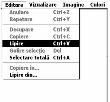 3. lansati din meniul Editare (Edit) comanda Lipire (Paste) - comanda ce va plasa informatia copiata anterior, în desenul în care ne aflam: