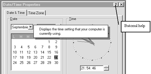 Daca se apasa butonul ce are marcat semnul întrebarii, din coltul din dreapta sus al ferestrei, iar apoi se executa clic pe o anumita optiune, se obtin explicatii despre acea optiune.