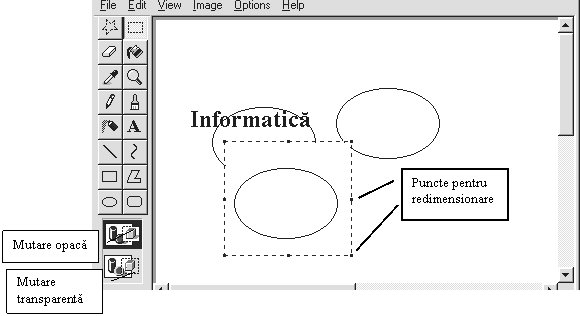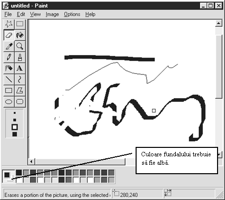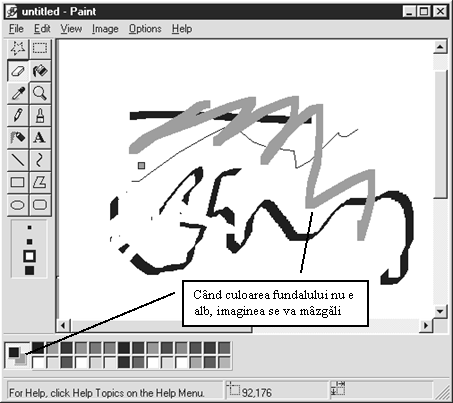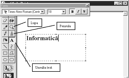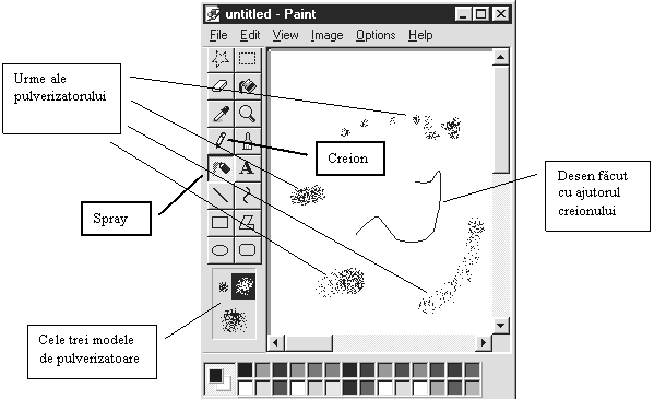 Alegând optiunea Paint din submeniul Accessories al submeniului Programs din meniul Start, se lanseaza programul Paint. Acest program permite crearea unor desene.