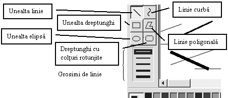 Având selectata unealta linie, sub trusa de unelte se gasesc diferite grosimi de linii. Alegerea unei grosimi de linie afecteaza desenele realizate si cu alte unelte, precum dreptunghiul, elipsa, etc.
